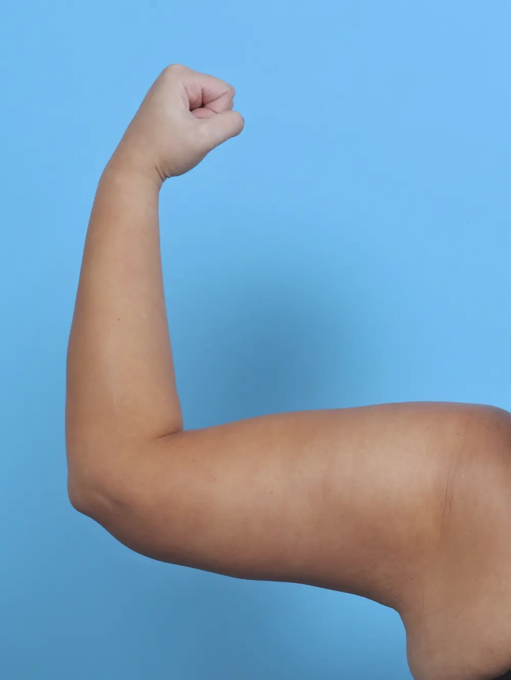 This 36 year old woman is 5’4 and 201 pounds. She had an arm lift (brachioplasty) . This patient chose a different scar pattern, instead of it being on the inner arm having the scar run along the back of her arm instead. These results are shown six months after surgery.