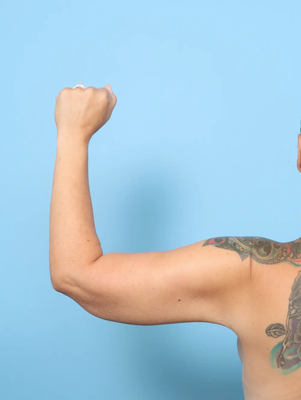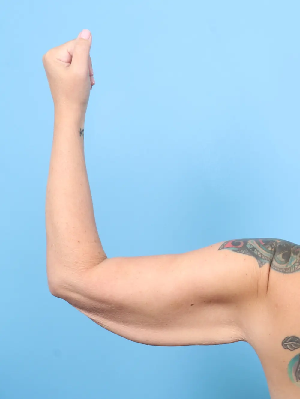 This 49 year old woman is 5’10 and 170 pounds. She had an arm lift (brachioplasty). These results are shown six months after surgery.
