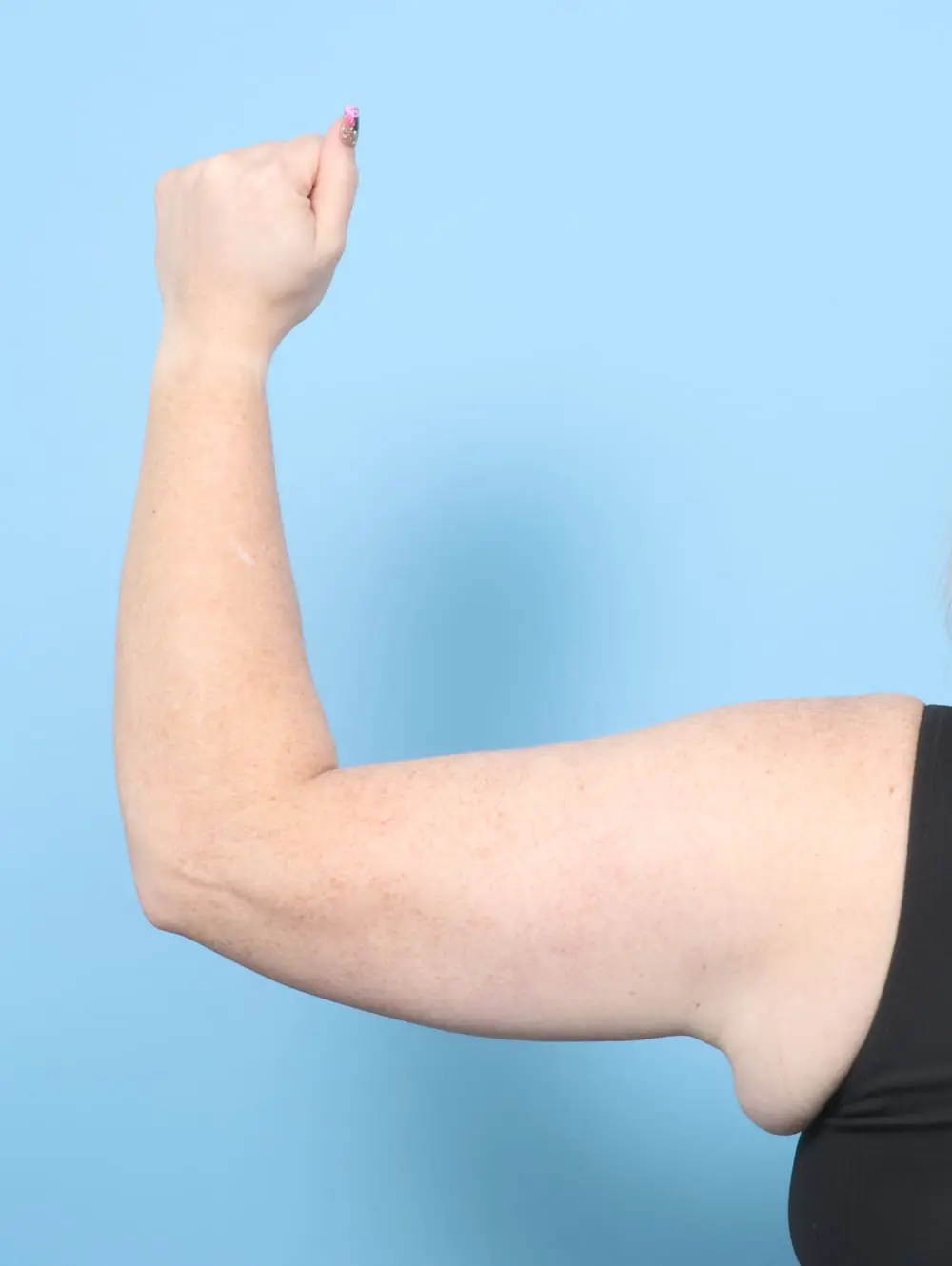 This 44 year old woman from Manteca, CA is 5’11 and 245 pounds. She had an arm lift (brachioplasty) after weight loss. These results are shown six months after surgery.