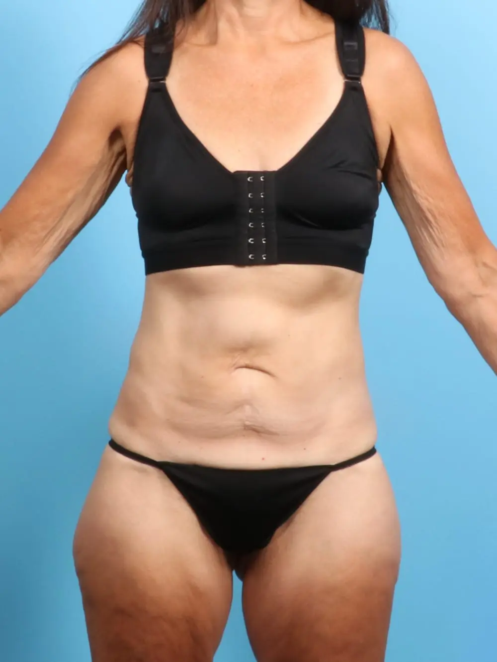 This 53 year old woman from Cameron Park, CA is 5’4 and 129 pounds. She had a Body Lift. Please note that the scar on her backside is much higher than usual due to the fact that she wanted to completely excise her unwanted tattoo.These results are shown 6 months after surgery.