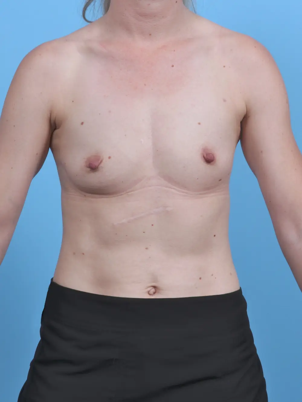 This 37 year old woman from Folsom, CA is 5’4 and 118 pounds. She had a breast augmentation using Sientra 330 high profile silicone cohesive gel implants, placing them behind the muscle. An incision in the breast crease was used. These results are shown six months after surgery.