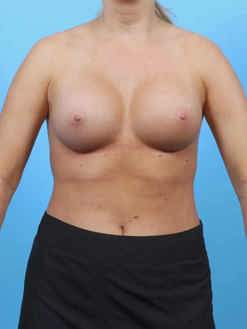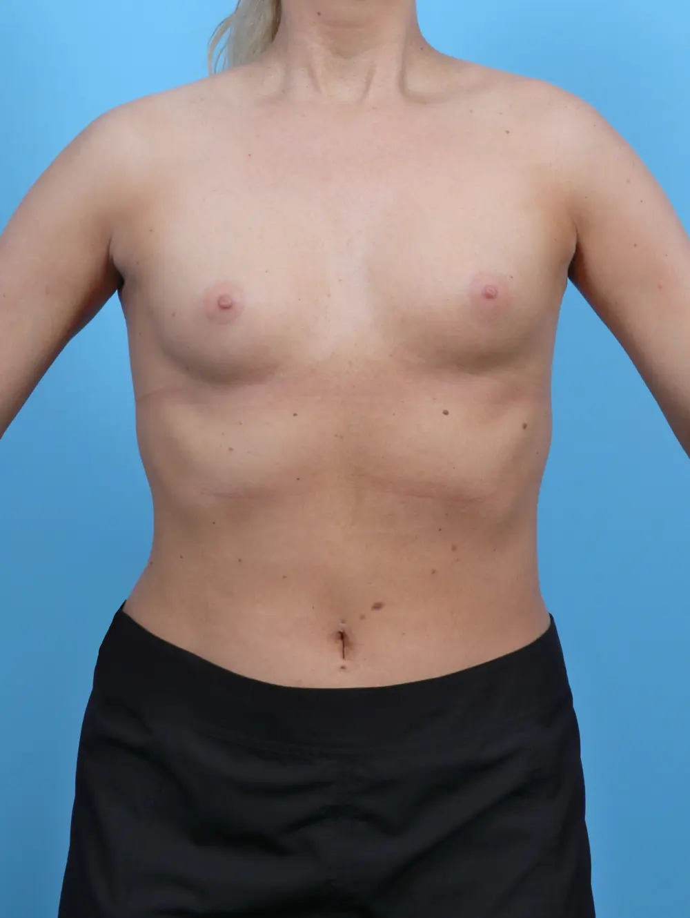 This 28 year old woman is 5’7 and 133 pounds. She had a breast augmentation using Sientra 355 moderate plus silicone cohesive gel implants, placing them behind the muscle. An incision in the breast crease was used. These results are shown six months after surgery.
