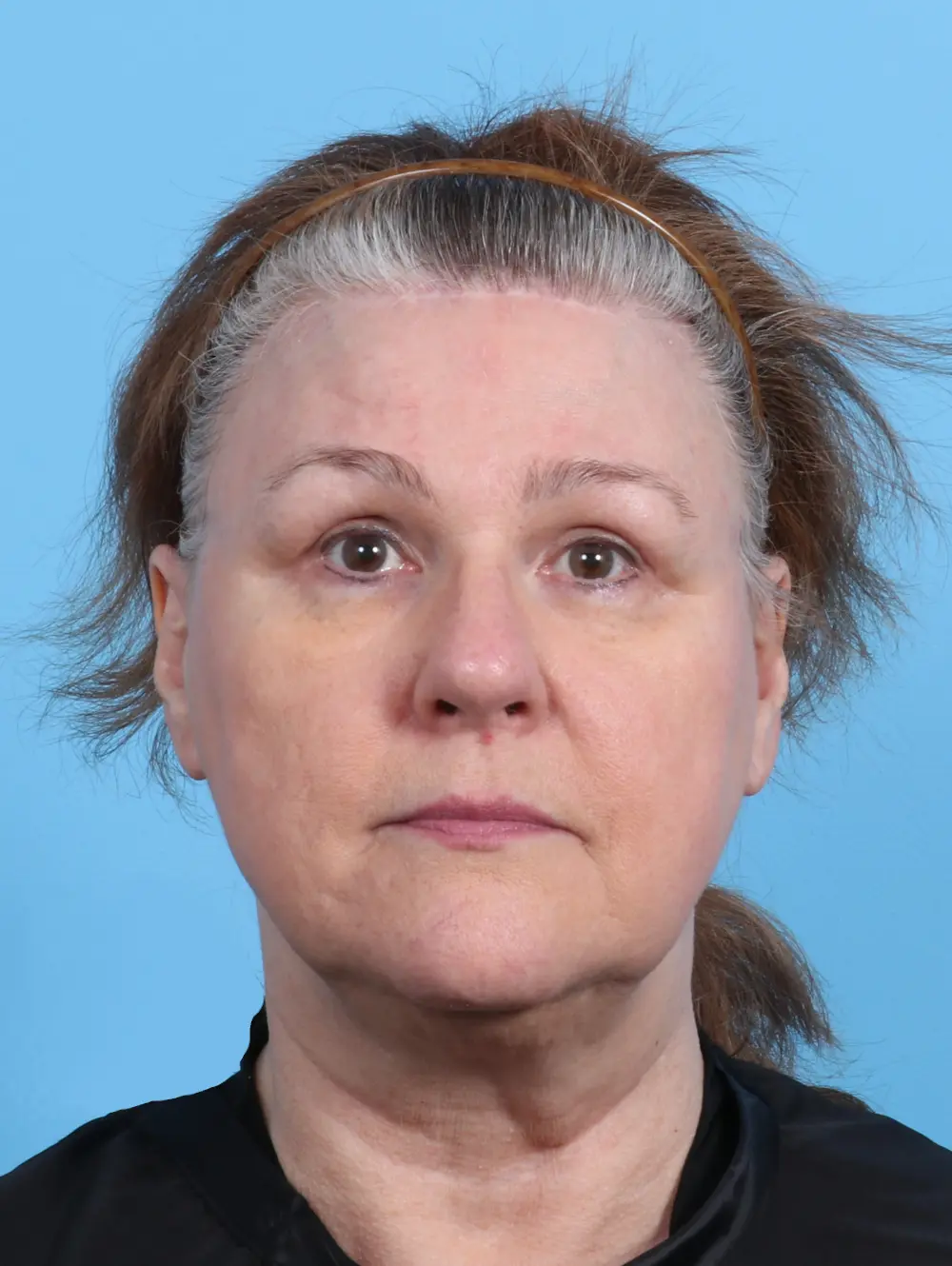 This 60 year old woman had a Brow Lift along with upper eyelid surgery. These results are shown six months after surgery.