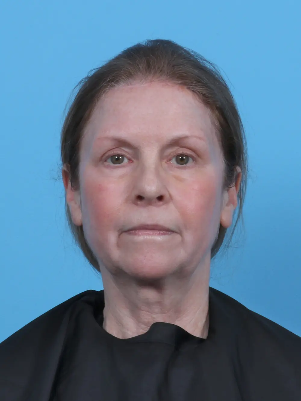This 61 year old woman had a forehead reduction with hairline advancement (brow lift), her upper eyelids done (blepharoplasty), and laser resurfacing . These results are shown six months after surgery.