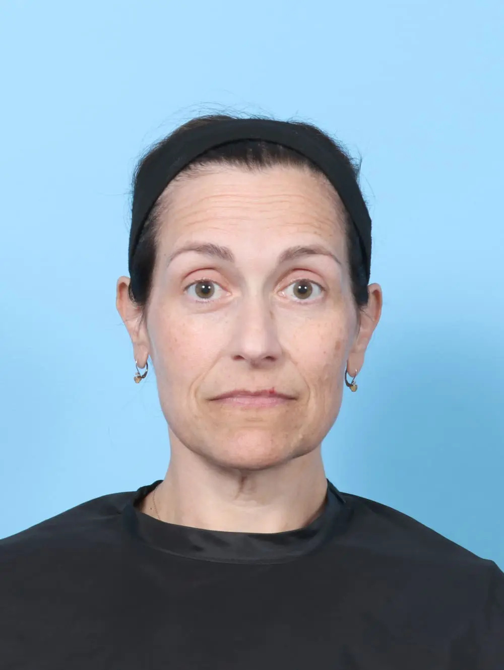 This 47 year old woman had a Facelift and her upper eyelids (blepharoplasty) done. These results are shown six months after surgery.