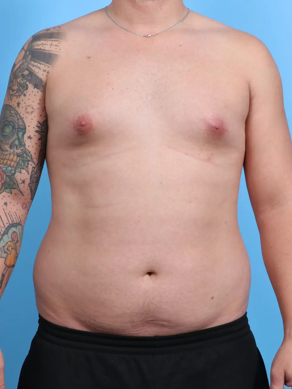 This 35 year old man is 6’0 and 226 pounds. He had a male breast reduction to treat gynecomastia. These results are shown six months after surgery.