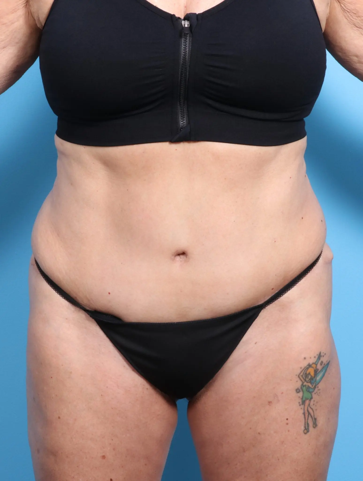 This 64 year old woman had a tummy tuck (abdominoplasty), and liposuction.