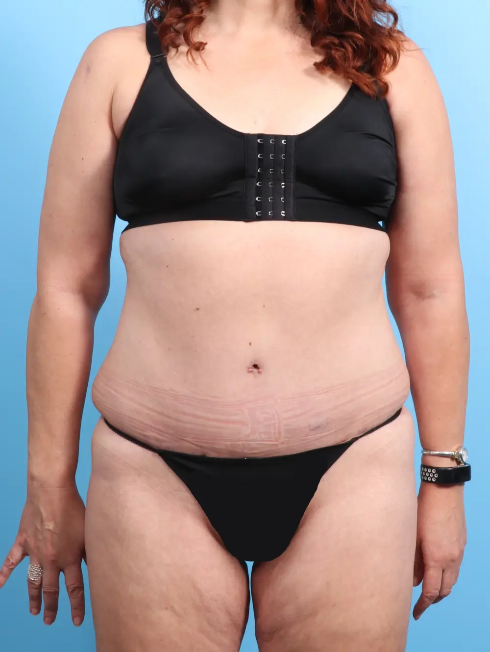 This 54 year old woman from El Dorado Hills, CA is 5’10 and 194 pounds. She had a Tummy Tuck. These results are shown 6 months after surgery.