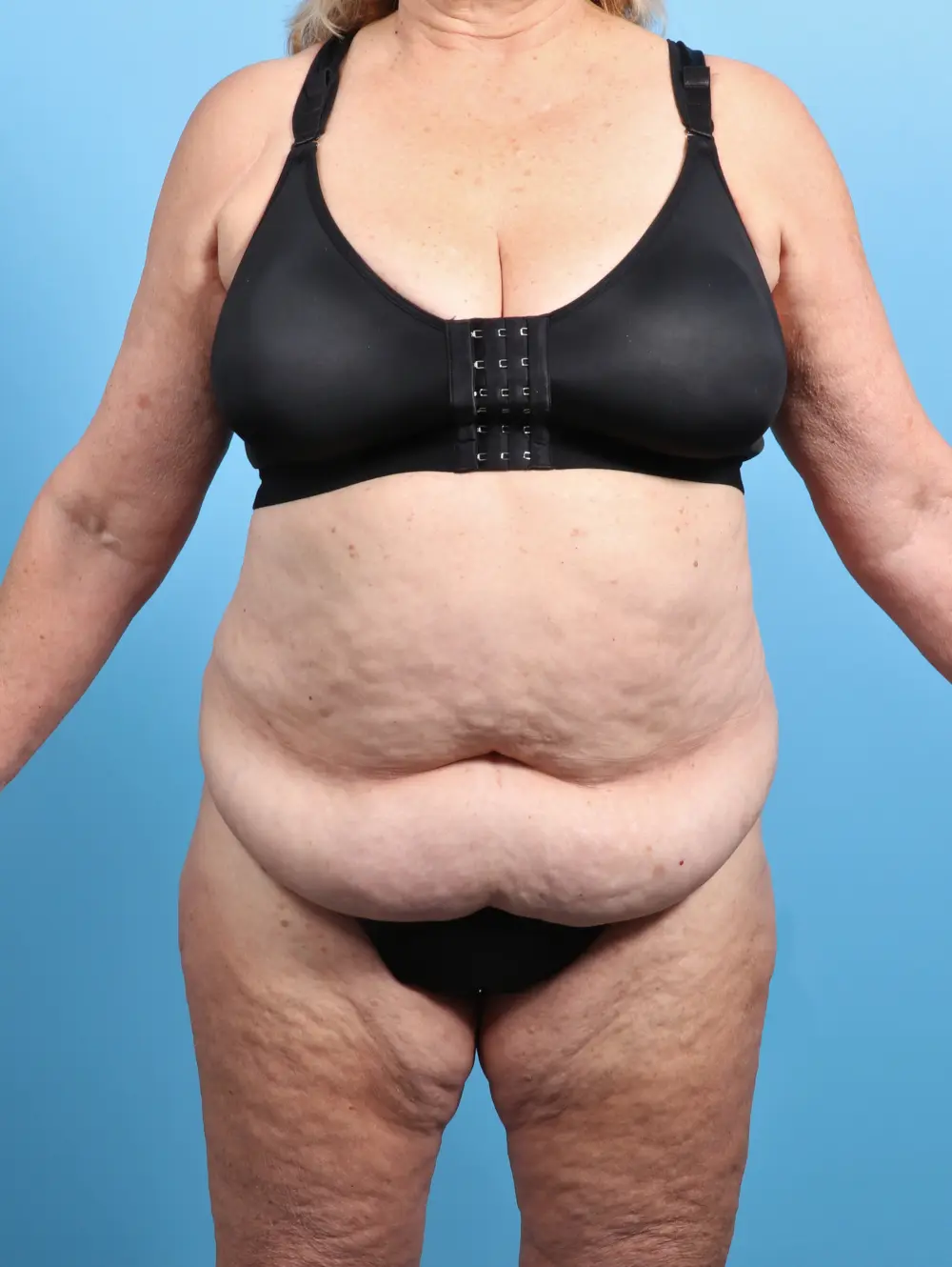 This 67 year old woman from Shingle Springs, CA is 5’4 and 180 pounds. She had a tummy tuck and liposuction of the backside. These results are shown six months after surgery.
