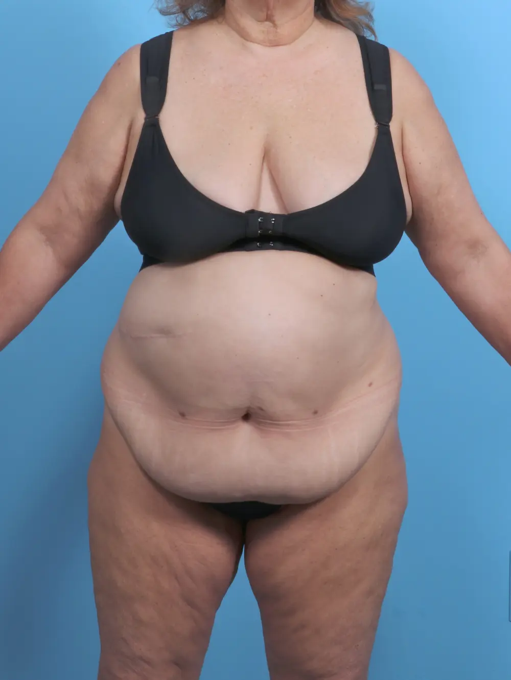 This 58 year old woman from Granite Bay, CA is 5’3 and 180 pounds. She had a tummy tuck with liposuction of the backside. These results are shown six months after surgery.