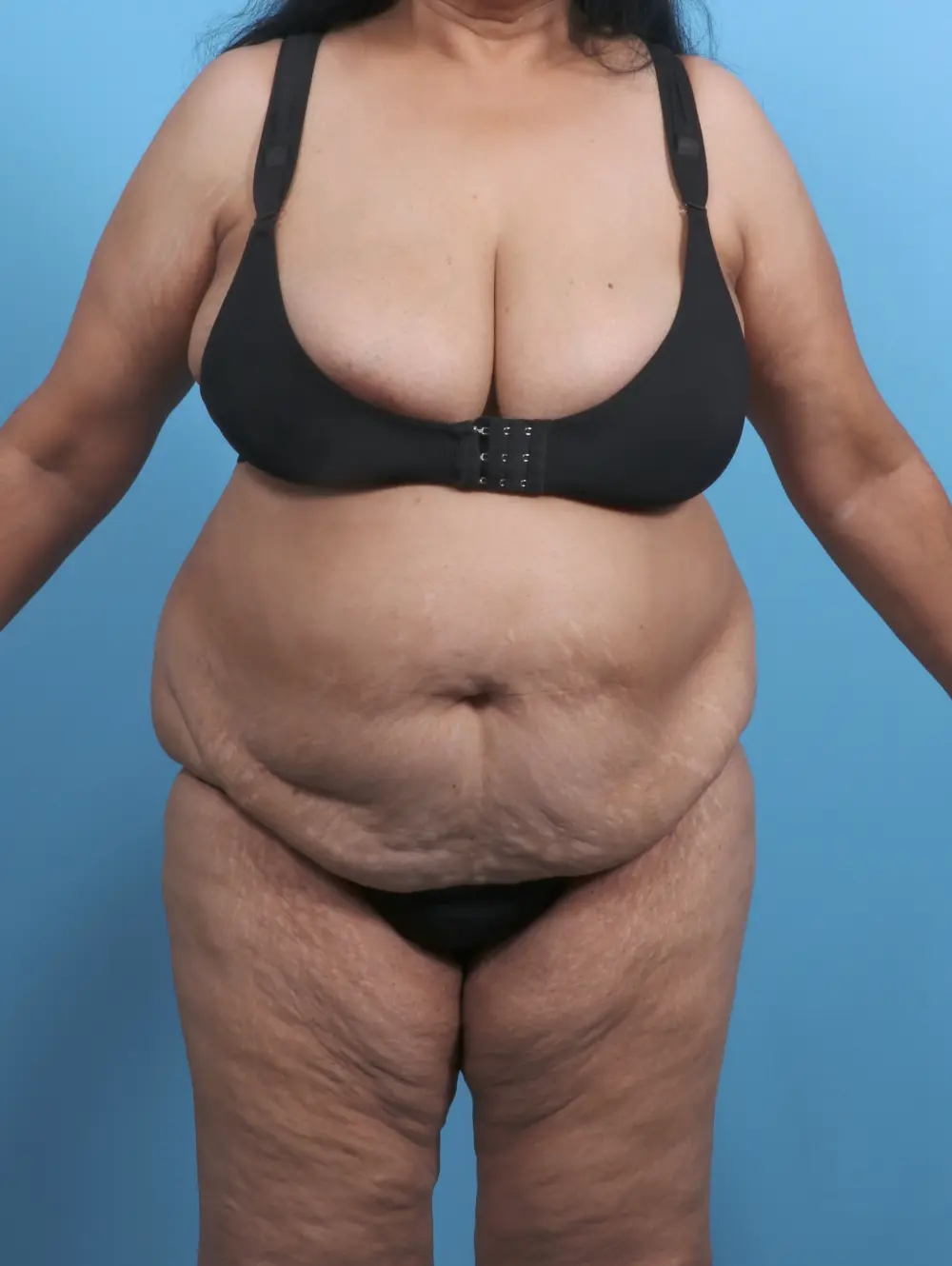 This 63 year old woman from Redding, CA is 5’9 and 239 pounds. She had a tummy tuck without muscle tightening. These results are shown six months after surgery.